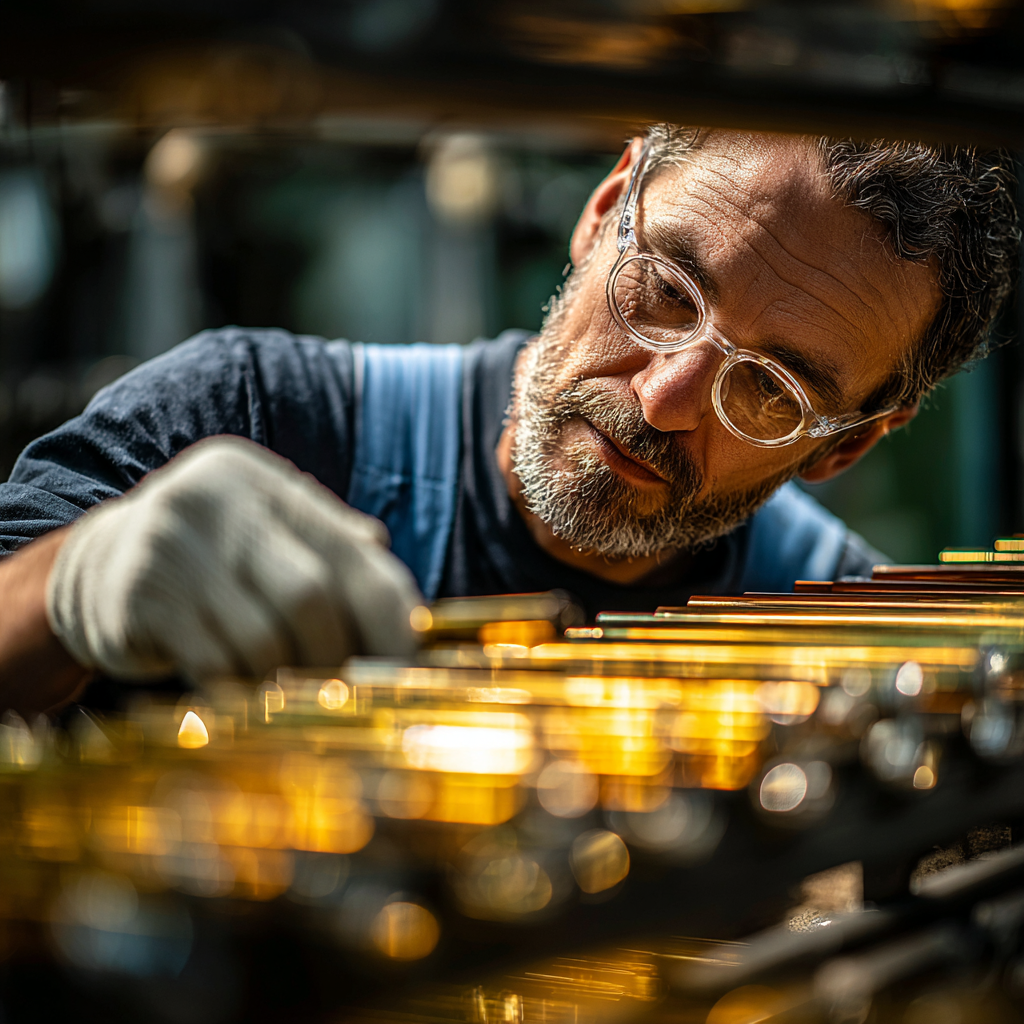 Barres de laiton sélectionnées, usinées sur CNC de haute précision puis reprises à la main pour des arêtes nettes et des portées parfaites. Les pièces sont lourdes, stables, sans jeu.